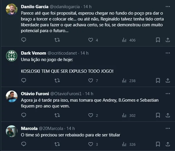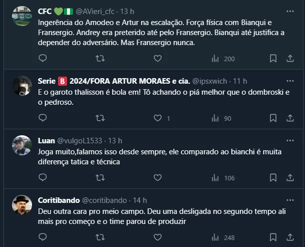Contudo, foi um dos grandes nomes em campo no jogo diante do Coelho e seu nome bombou na torcida. Preterido muitas vezes no Alto da Glória, Andrey teve sua titularidade requisitada por muitos torcedores.
