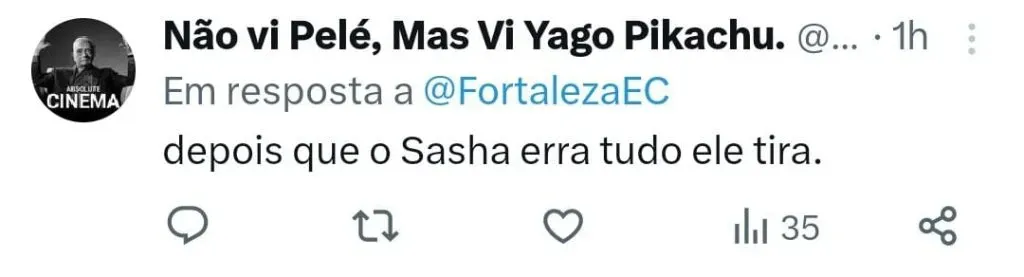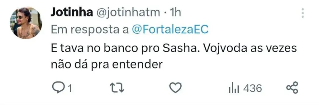 Ainda houve torcedor destacando o bom momento vivido pelo jogador e questionando Vojvoda. “Como que o Vojvoda barra o Zé na melhor fase dele pra pôr o Sasha? Não encaixou em nada com o Caio hoje.”, postou outro.