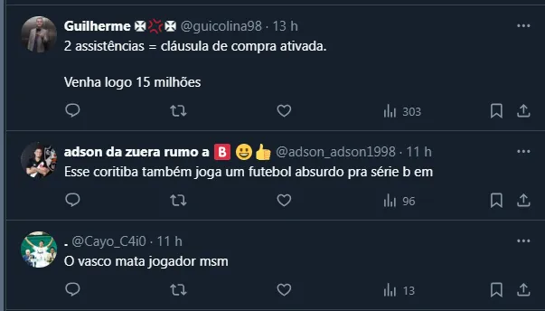 Vale a pena deixar claro que, depois de ser uma das peças importantes do Vascão na disputa da Série B de 2022, o jovem perdeu espaço no Gigante e foi cedido por empréstimo ao Coxa ainda no ano passado.