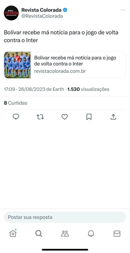 E uma notícia que agitou a todos no Internacional no final da tarde do último sábado (26), foi que uma notícia vinda de última hora da Bolívia é de que um defensor do Bolivar não ficará à disposição da comissão técnica para o duelo contra o Colorado no Beira-Rio. Os bolivianos, por sua vez, estão muito preocupados com a situação e já acreditam que o atleta está fora da partida.
