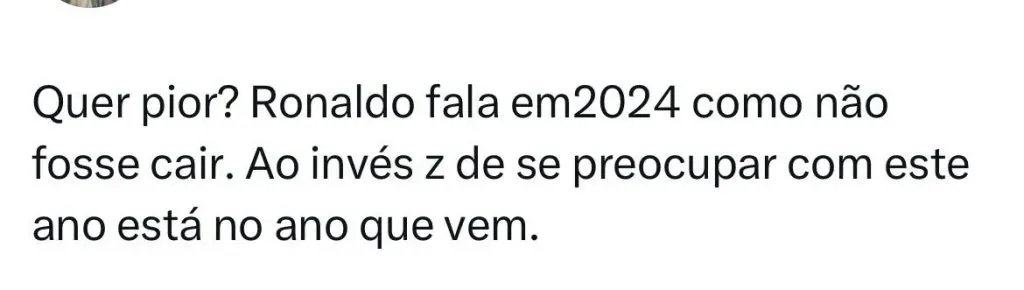 Caso a vaga na elite seja garantida e a Raposa também classifique para a Sul-Americana, Ronaldo prometeu um investimento maior para o ano que vem. E o empresário já definiu as prioridades no mercado da bola do ano que vem.