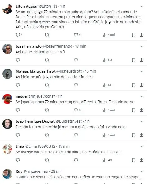 Brum deu uma resposta curta e bastante inusitada, o que deixa a avaliação dúbia sobre o que pensa a diretoria Tricolor. Provocado a fazer uma análise sobre Iturbe, o vice-presidente foi direto ao ponto.