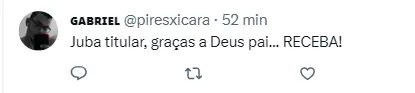 A torcida foi à loucura com a confirmação da presença de Juba na lista de relacionados. “Hoje Juba de titular!”,”Juba!!”, “Juba de titular”,”Com vocês, Luciano Juba”, “Bora juba!, “Juba titular, graças a Deus pai, receba!”, foram algumas publicações da torcida no Twitter.