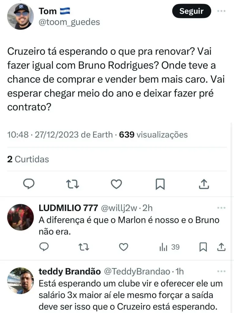 Porém, além de estar preocupado em trazer novas peças ao Cruzeiro, Ronaldo teme perder suas principais peças-chaves, como por exemplo, o lateral-esquerdo Marlon, que tem sido alvo constantes de times do Brasil.