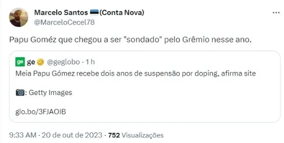 A questão é que o Imortal se livrou de um ‘problemão’: o veterano foi punido com dois anos de suspensão por doping, de acordo com o site espanhol “Relevo”, que afirma que o jogador testou positivo para uma substância proibida em novembro de 2022, quando ainda estava na Espanha, dias antes de disputar se juntar com sua Seleção.