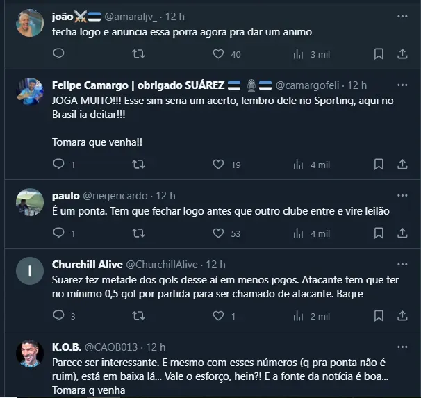Posto isso, apesar do abismo existente entre o atleta e Luís Suárez, o nome de Gelson Martins foi aprovado pela torcida do Imortal. Até por isso, o assunto bombou nos bastidores e a criatividade da direção foi elogiada.