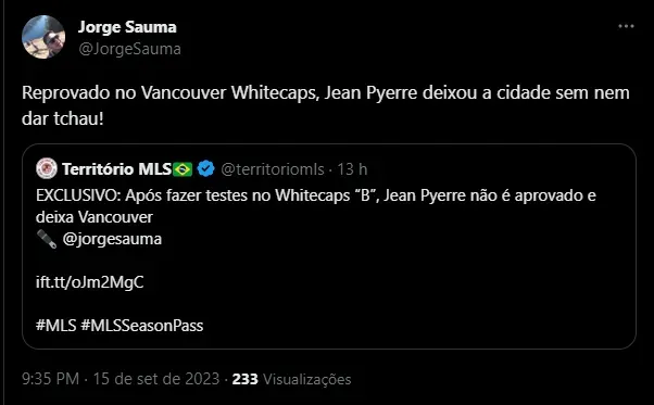 Com isso, a equipe canadense foi atrás de outro nome e já até anunciou o meia-atacante Junior Hoilett, ex-Reading (ING). Além disso, segundo o jornalista Jorge Sauma, o atleta deixou a cidade sem sequer dar tchau para o pessoal do clube. Agora, com a conta de Instagram fechada, vejamos quais serão os próximos passos de Jean no mundo da bola.
