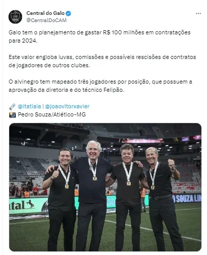 Segundo a Central do Galo (página no X, antigo Twitter), diante dessa situação, o Atlético já está preparando um planejamento orçamentário para fazer as contratações.