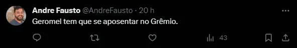 As partes seguem conversando, mas o alto salário do jogador é um entrave para o acerto. Internamente, nos bastidores do Grêmio, há um otimismo para o acerto entre as partes, principalmente pelo carinho de Geromel com o Clube.