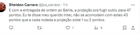 O Internacional quer espantar qualquer chance de rebaixamento no Campeonato Brasileiro. As próximas rodadas da competição nacional serão decisivas para isso acontecer. A equipe pode conseguir isso já na próxima rodada.