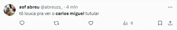 “Pessoas bem informadas juram que um dos nomes visados é o de Carlos Miguel, do Corinthians. Ele apareceu muito pouco, mas bem na temporada”, relatou o jornalista.
