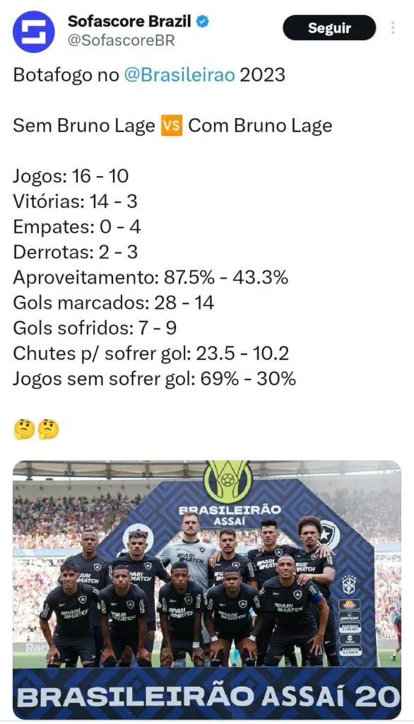 Após uma sequência negativa, o técnico Bruno Lage não resistiu ao cargo de técnico do Botafogo. Ele deixou a equipe com cinco vitórias, sete empates e quatro derrotas em 16 jogos disputados. O empate contra o Goiás encerrou o ciclo do treinador. Vale destacar que antes disso, a equipe vinha de quatro derrotas consecutivas, além de uma eliminação na Copa Sul-Americana.
