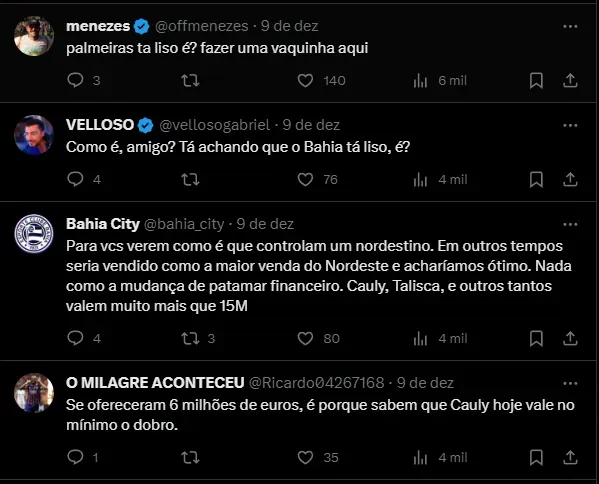 Com uma possível renovação e aumento salarial, o Bahia deve garantir a permanência de Cauly para 2024. O time almeja fazer uma temporada diferente, começando com boas ações no mercado de transferência.