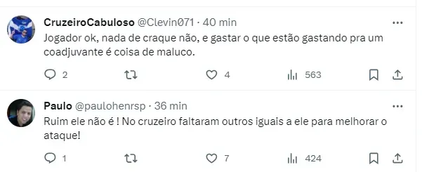 Com isso, o Cruzeiro se prepara para reforçar mais o elenco para brigar por coisas maiores na próxima temporada. Além disso, a ideia é manter os seus principais jogadores, como é o caso de Bruno Rodrigues.