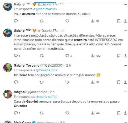 “Vão bora. Estar vestindo a camisa do Cruzeiro é um privilégio. Falei para dar sequência à oportunidade, não dependia de mim, mas estou muito grato“, completou.