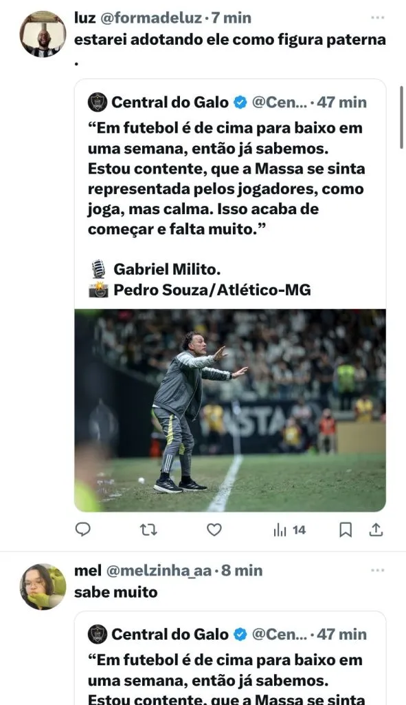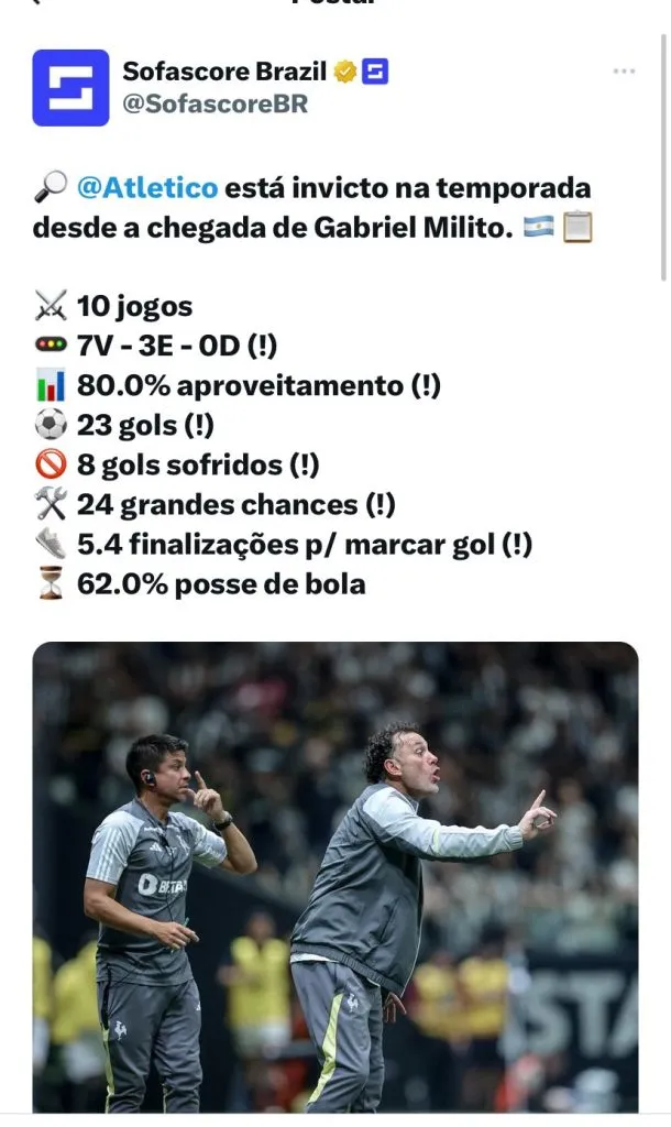 Desde que chegou ao Atlético Mineiro, Gabriel Milito não sabe o que é derrota. São 10 jogos comandando o Galo, com 80% de aproveitamento, 23 gols marcados e 8 sofridos.