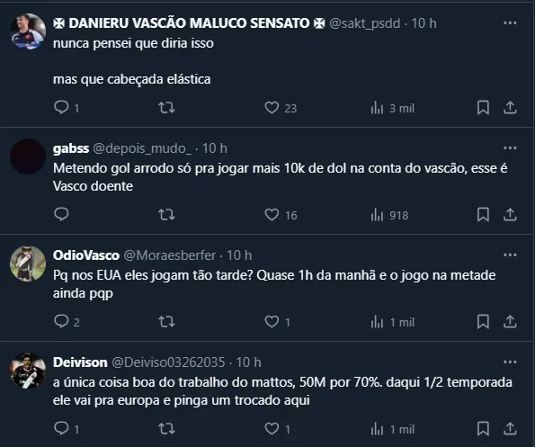 Isto é, enquanto grande parte da torcida lamenta o fato dos gols marcados pelo jogador não serem com a camisa do Vasco, outros comemoram o fato dele estar chamando atenção de outros mercados, o que renderia uma grana ao Clube.