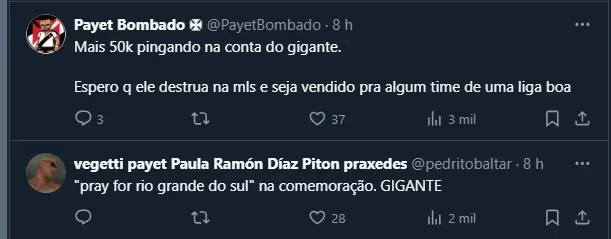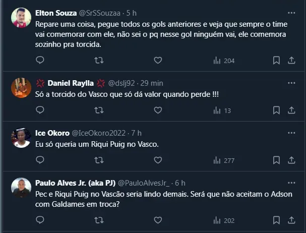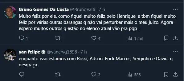 Sendo assim, até pelo momento ruim vivido atualmente pelo Vasco, a torcida foi até as redes sociais e lamentou muito a saída de Pec, principalmente comparando com os atletas do atual elenco.