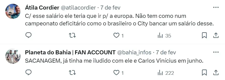 Apesar das especulações, a SAF do Clube Baiano não tem interesse na contratação do meia do Galatasaray, segundo informou o comunicador Matheus Bardaço. A diretoria não fez contato com estafe do atleta.
