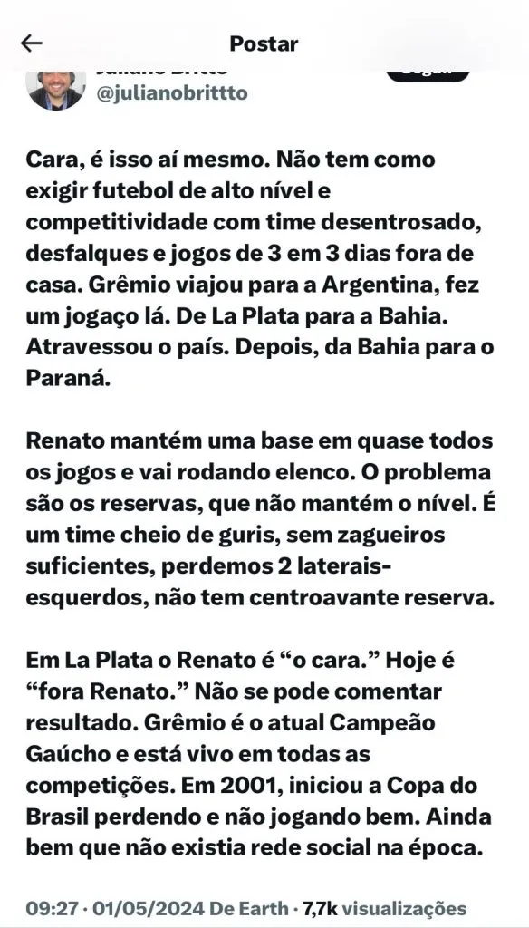 O que dizem os torcedores do Grêmio: