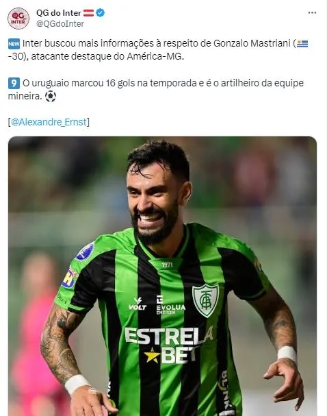 Entretanto, as prioridades no mercado da bola estão traçadas e recentemente veio à tona o interesse do Colorado na contratação do atacante Gonzalo Mastriani, que atualmente atua pelo América-MG. Embora a equipe mineira esteja fortemente ameaçada pelo rebaixamento, Mastriani consegue se destacar e já cravou a marca de ser o principal artilheiro do futebol sul-americano no segundo semestre.