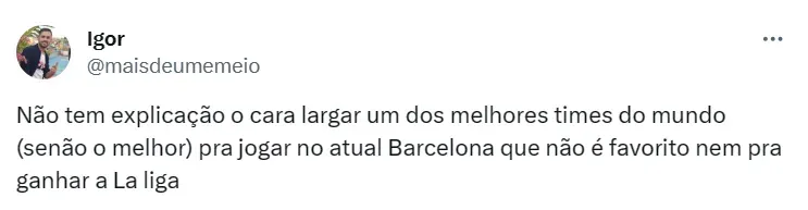 Em entrevista coletiva, Xavi Hernández, técnico do rival, colocou panos quentes na situação. Para ele, Gundogan, que é alemão, vem de uma cultura diferente da que tem os espanhóis.