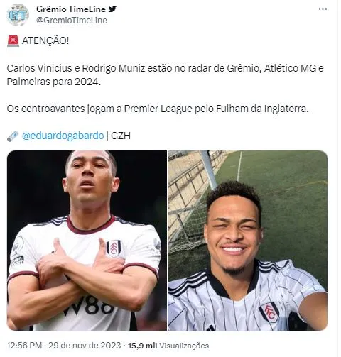 Mas, se quiser contratar Muniz, o Grêmio terá que desembolsar uma quantia pesada pedida pelo Fulham, bem como superar a concorrência do Atlético-MG, que inclusive, já abriu conversa para tentar repatriar o atacante.
