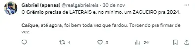 Caíque revela surpresa no Grêmio e torcida faz pedido imediato antes de ‘final’ contra o Vasco