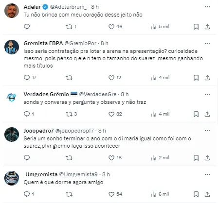 Vale ressaltar que a informação é que apenas houve um contato do Grêmio para saber a situação de Di María e não tem nada avançado no momento. Provavelmente, como foi com o uruguaio, para trazer o argentino, o Clube contaria com ajuda de investidores.
