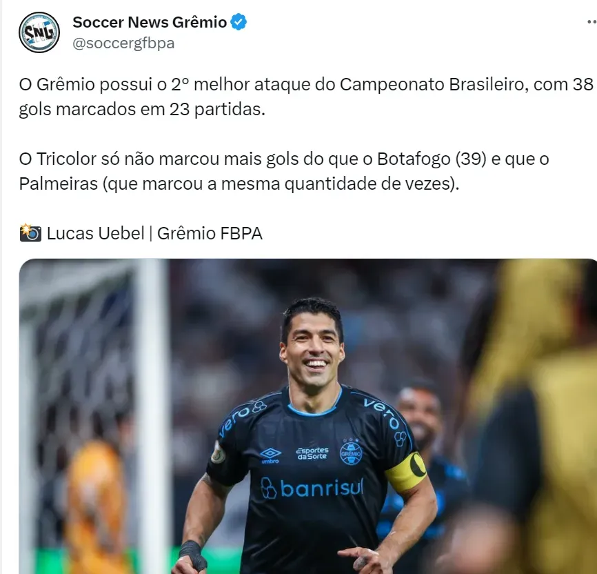 Os dois jogadores ajudaram o Grêmio a deixar o Flamengo para trás e, ao lado do Palmeiras, tem o segundo melhor ataque do Campeonato Brasileiro, com 38 gols marcados. O Tricolor Gaúcho só fez menos gols que o Botafogo, líder da competição nacional, que balançou as redes 39 vezes. No Brasileirão, Suárez é o artilheiro do time com sete gols e Cristaldo é o segundo maior goleador, com apenas um gol a menos.