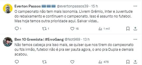 O ofício do pedido foi enviado pela Federação Gaúcha de Futebol, porém, sem resposta da entidade máxima. Vale lembrar, que a CBF já decidiu que não vai paralisar as atividades do esporte de uma maneira geral.