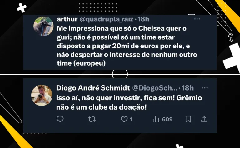 Porém, o Chelsea não bate o pé e não quer aumentar a proposta pela promessa da base Tricolor. Se for vendido, o atleta só poderá sair no meio de 2026, quando o jogador já terá completado 18 anos.