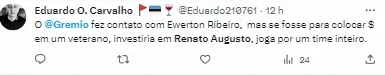 De acordo com informações do canal do YouTube Portal do Gremista, o Grêmio estava atento a situação do meia Renato Augusto, mas um problema apareceu. Segundo a apuração, o camisa 8 do Alvinegro do Parque São Jorge já iniciou conversas para renovar com a equipe paulista.