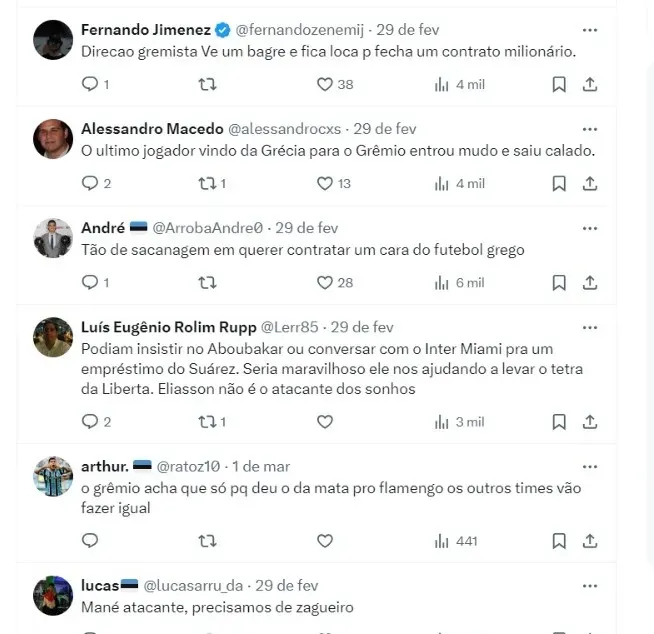 Opiniões da torcida gremista sobre o sueco
