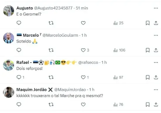 Apesar do retorno importante de Soteldo, o Grêmio tem um desfalque bastante preocupante. Ainda segundo o jornalista Diego Torbes, Marchesín segue fora e não foi relacionado.