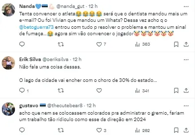 Outro fator é a cobrança da torcida do Imortal devido ao fato do rival ter três centroavantes badalados no elenco. O Inter já tinha Enner Valencia e fechou com Alario e Borré. Com isso, os tricolores cobram que a diretoria se movimente.