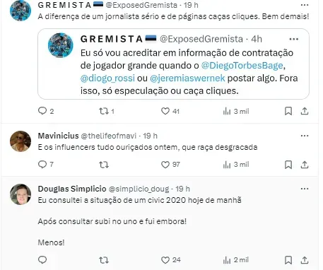 “Sobre Di María: o Grêmio consultou a situação entre outubro/novembro, se gostaria de jogar no Brasil. A resposta foi que o atleta já tem um pré-acordo para jogar no Rosário Central. Não houve proposta, apenas consulta”, relatou o setorista.