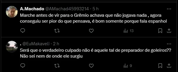 No domingo (14), o Grêmio perdeu para o Vasco por 2 x 1, no Estádio São Januário, em partida válida pela 1ª rodada do Brasileirão Série A 2024. Durante a após o confronto, boa parte dos torcedores não aprovaram o desempenho de Marchesín.