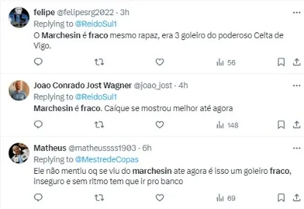 Porém, de acordo com o portal Trivela, com apenas sete jogos, o argentino, de 35 anos, não vem agradando os torcedores, especialmente depois de falhar no segundo gol sofrido no Gre-Nal, na derrota por 3 a 2, em chute cruzado de Alario.