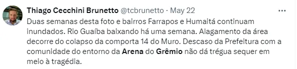 Durante a epidemia da Covid-19, o futebol parou por quatro meses e quando retornou os atletas jogavam com arenas sem público. Neste momento, de crise climática no Estado, a solução gremista é jogar no Couto Pereira na Libertadores e ir encontrando alternativas em outras competições.