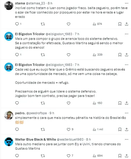 Ele vem sendo especulado na equipe e poderia ser mais um reforço para a zaga gremista que já conta com: Kannemann, Pedro Geromel, Natã, Gustavo Martins, Bruno Uvini e Rodrigo Ely.
