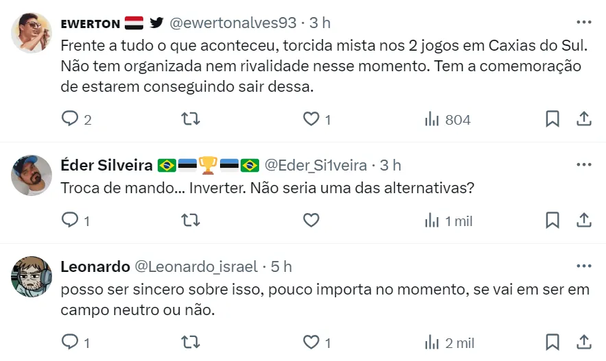 O Tricolor corre o risco de passar o resto da temporada longe da Arena em função da condição do gramado pelas fortes chuvas. O Clube Gaúcho ainda não definiu um lugar ‘fixo’ para atuar e discute onde mandar o clássico contra o Internacional.