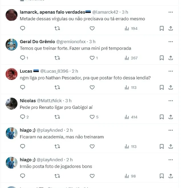 Lucas Besozzi e Carballo completam a lista dos jogadores que chegam no sábado, especificamente durante o período da noite. Vale mencionar que Geromel, Mayk, Pavon, André Henrique, Mila e Jhonata Robert não viajaram pois estão lesionados e seguem em recuperação.