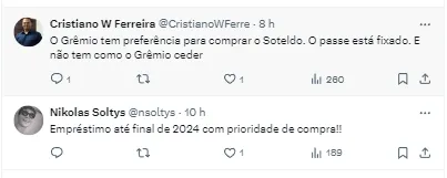 Gremistas falam sobre especulação envolvendo Soteldo