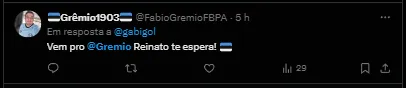 No que diz respeito ao Tricolor Gaúcho, o jornalista JB Filho trouxe em seu canal no YouTube que, neste momento, a diretoria não se movimentou e não pretende contratar o jogador.