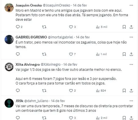 O jogador chegou no Grêmio precisando de um trabalho específico para adquirir um condicionamento físico adequado. Todavia, em um primeiro momento, a comissão técnica esticou a data da possível estreia. Mas, nesta terça-feira (20), o cenário foi atualizado e o centroavante ganhou novos planos.