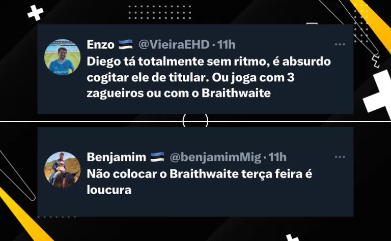 Com isso, dinarmaques Braithwaite deve ser o titular na equipe de Renato Gaúcho, principalmente pelos gols marcados no último fim de semana, pelo Brasileirão Série A.