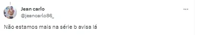 “Não estamos mais na Série B, avisa lá”. “Pelo visto, eles querem que a gente volte”. “O time da Série B de 2025 esta sendo montado. Obrigado Alberto Guerra e dentista por nos proporciona um elenco medíocre em ano de Libertadores”, criticaram alguns torcedores.