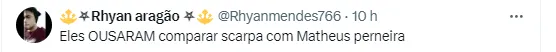 Aliás, o meia atleticano foi até comparado com Ronaldinho Gaúcho. Tudo isso por conta do gol que ele marcou, de falta. O camisa 6 enganou os adversários e converteu sua cobrança, chutando a bola por baixo da barreira.