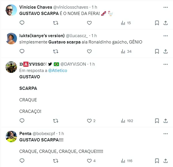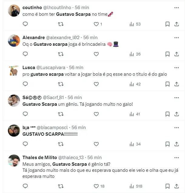 O desempenho de Gustavo Scarpa está agradando ao torcedor atleticano?